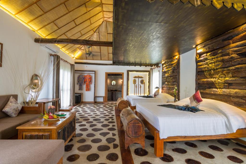 Located in Siem Reap, within 18 km of Angkor Wat, Bong Thom Forest Lodge offers express check-in and check-out, non-smoking rooms, an outdoor swimming pool, free WiFi and a garden . It has a 24-hour reception, a restaurant and a children's playground. The property provides room, concierge and ticketing services.
