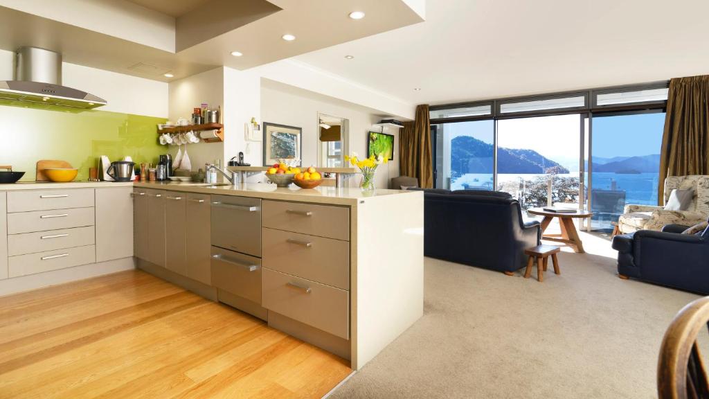 Sounds View 304 is a 5-star luxury apartment with a sunny balcony overlooking the bustling wildlife paradise of Picton. It offers spectacular views of Marlborough Sounds and the surrounding hills covered with bush clay. Free Wi-Fi is available.