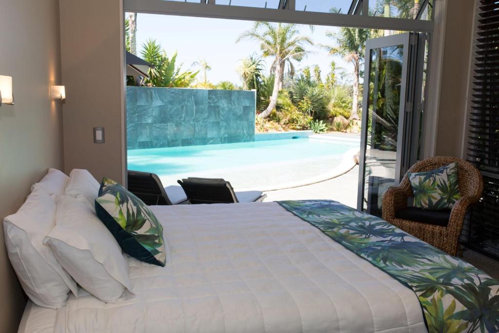 El Bay of Islands Health Retreat, situado en Kerikeri, ofrece alojamiento con patio o terraza, conexión WiFi gratuita, TV de pantalla plana, piscina exterior de temporada y jardín. La propiedad tiene una sauna.
