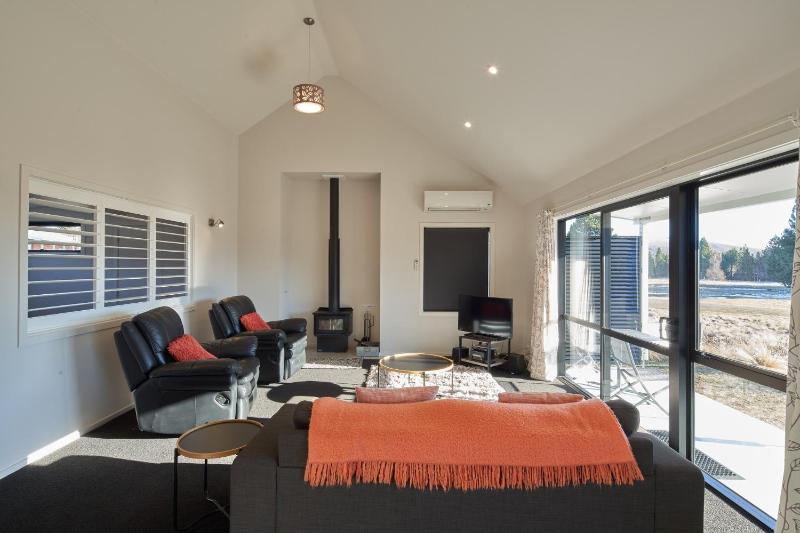 La casa Cass Crib tiene patio con vistas a la montaña y se encuentra en el lago Tekapo. Este alojamiento con aire acondicionado está a 42 km de Twizel.