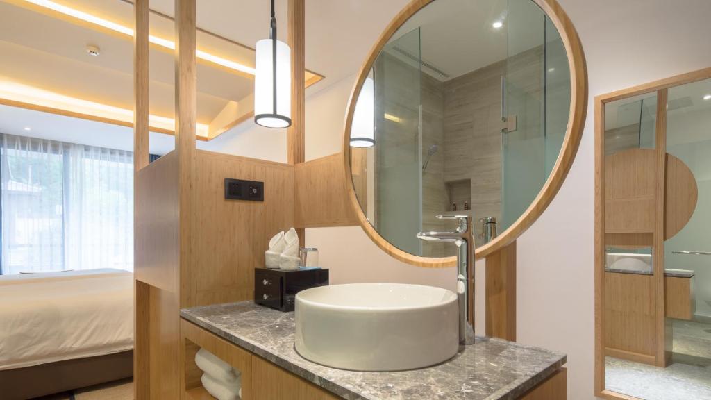 El Howard Johnson Huashuiwan Hot Springs Resort Chengdu está situado en Dayi y cuenta con restaurante, bar, salón compartido y jardín. Los huéspedes pueden disfrutar de una terraza e instalaciones para practicar deportes acuáticos. El establecimiento cuenta con recepción 24 horas, servicio de habitaciones y mostrador de información turística.