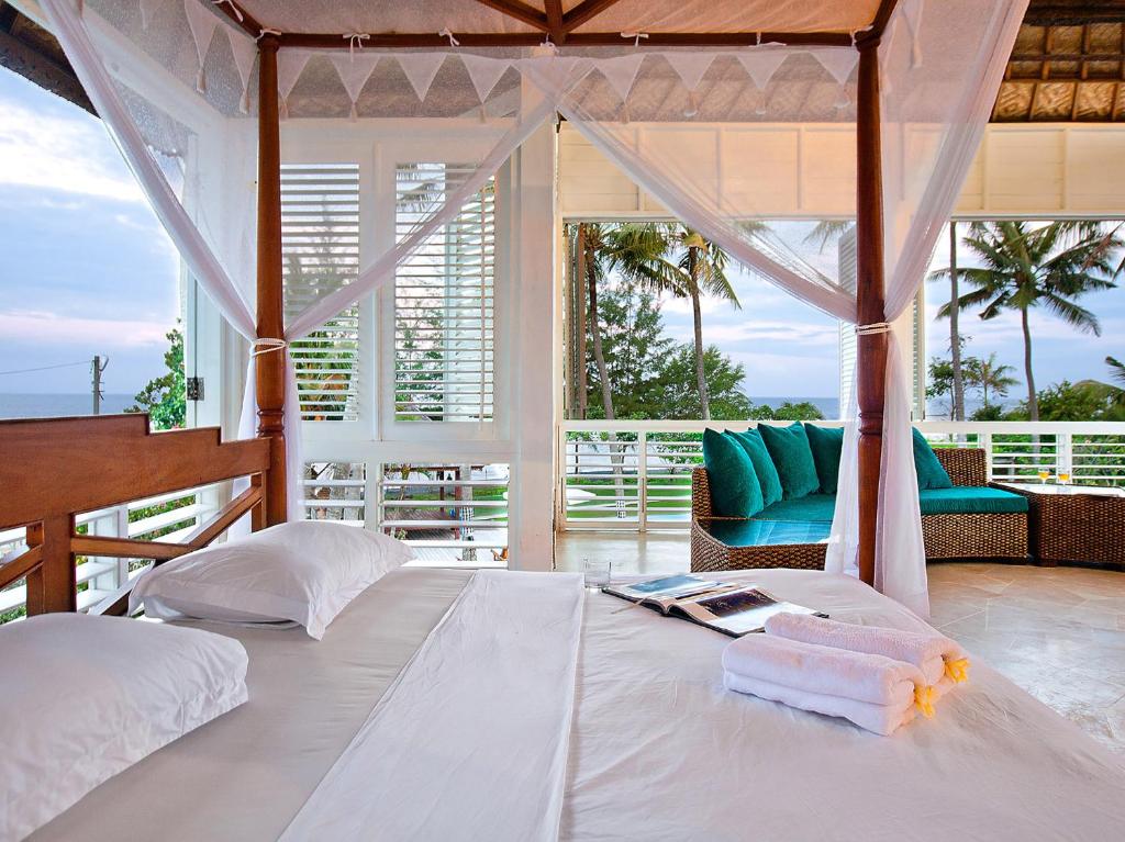 Con una ubicación tranquila frente a la playa en el este de Bali, Villa Puri Nirwana es una lujosa villa de estilo colonial con 6 dormitorios, una piscina privada y 20 empleados a tiempo completo. Se encuentra a 100 metros de Cucukan, un pequeño pueblo de pescadores, frente al Bali Safari and Marine Park.