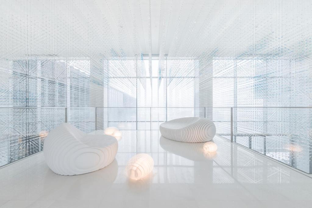 Compuesto por 4 paredes exteriores de vidrio, el edificio del Yanling Jianye The Mist Hot Spring Hotel está inspirado en la iluminación asociada con la sombra de la niebla primaveral. Diseñado por un famoso arquitecto tailandés, el hotel integra elementos naturales en un diseño innovador para crear un paisaje Yanling único.