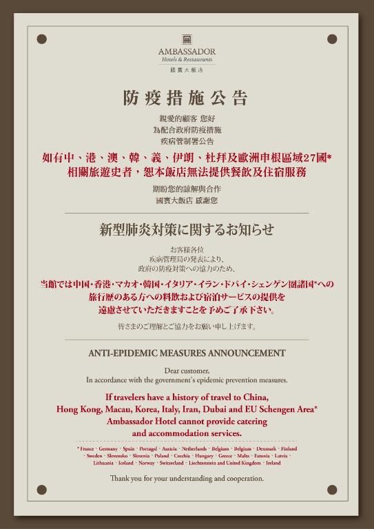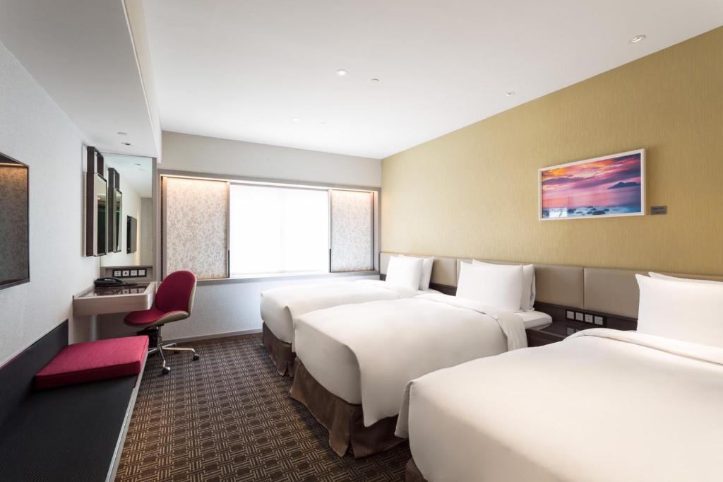 The Ambassador Hotel Taipei is a luxurious 5-star hotel located along Taipei’s Zhongshan District. It offers a seasonal outdoor pool, 6 dining options and free parking on site.