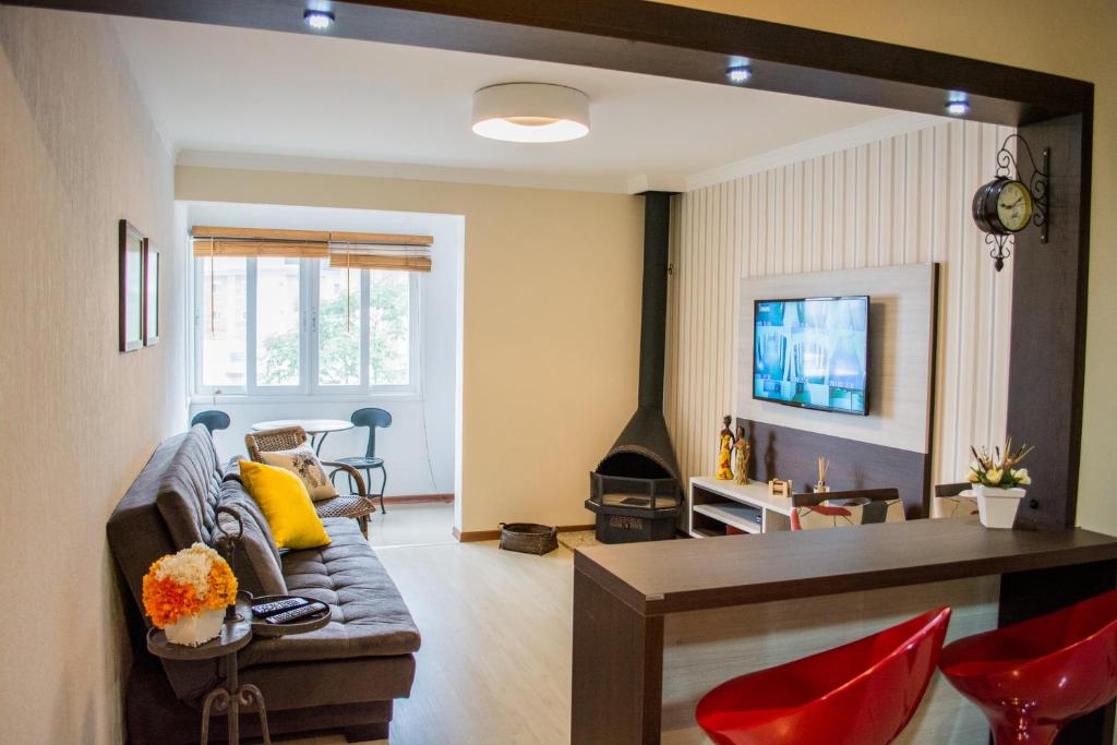 Doté d'un barbecue, l'Apartamento Baviera 01 est situé à Canela, à 3 km de Mundo a Vapor, à 3,6 km du parc Alpen Park Canela et à 6 km de Castelinho. Cet hébergement climatisé se trouve à 200 mètres de l'église de pierre. Vous bénéficierez gratuitement d'un parking privé sur place et d'une connexion Wi-Fi.