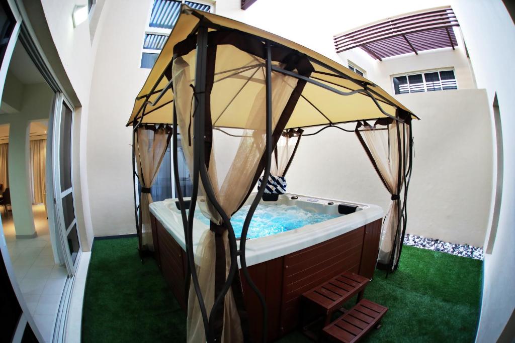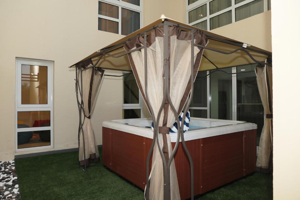 Situé à Ras al Khaimah, à 7 km du centre commercial Al Hamra, l’établissement JANNAH Homes Jacuzzi Villas propose des hébergements avec une piscine extérieure, un parking privé gratuit, un jardin et une terrasse. Offrant une vue sur le jardin, les chambres de cet établissement 5 étoiles bénéficient d’un bain à remous. Vous pourrez profiter d’une réception ouverte 24h/24, d’une connexion Wi-Fi gratuite et de services d’étage et de navette aéroport.
