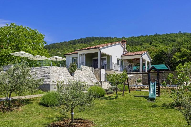 Située à Labin, la Villa Paliska in Ripenda Kras L'établissement (Haus für 6-8 Personen) propose des hébergements avec connexion Wi-Fi gratuite, climatisation, service de prêt de vélos et accès à un jardin avec une piscine extérieure. Cet établissement dispose d'une piscine privée et d'un parking privé gratuit.